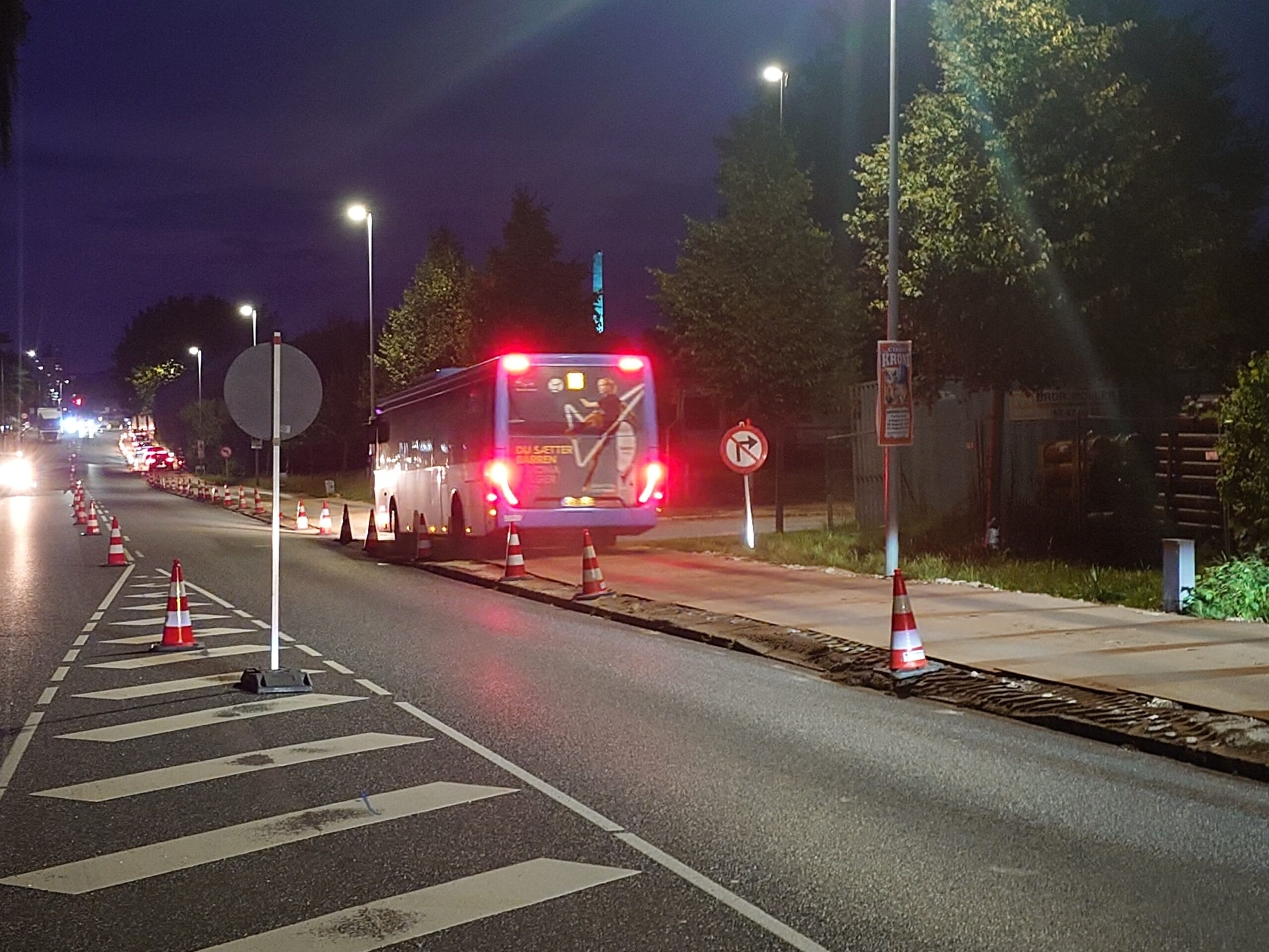 Randers Ugeavis var forbi torsdag aften og kunne ved selvsyn se, at fodgængere ikke forstod skiltningen, men pludseligt gik på kørebanen, og der var knapt nok plads til rute 118 Århus – Randers bussen på metalpladerne. Der er i hvert fald dømt langsom trafik og spærrede sideveje.