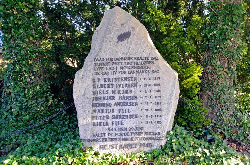 Efter frokosten vil Hendes Majestæt lægge en krans i Mindelunden ved Hvidsten Kro, hvor de otte henrettede modstandsfolk fra Hvidstengruppen ligger begravede.